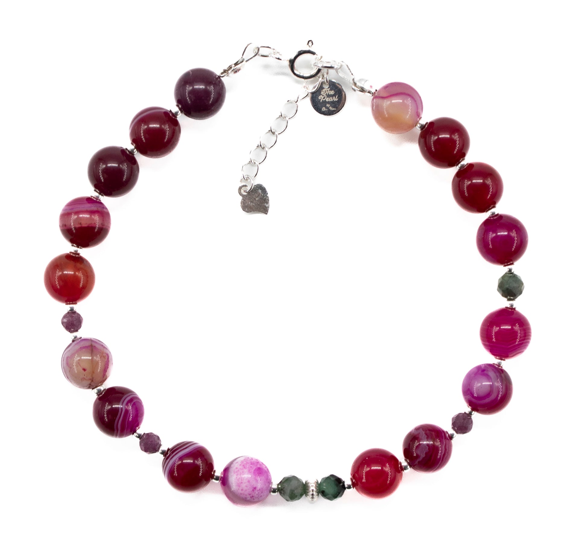 An Indian silver bead and silver-plated Japanese Miyuki beads add luxury and style to the Valentina Bracelet. Silver symbolizes purity and protection, and its shine contrasts beautifully with the colorful gemstones and agate beads. Miyuki beads are known for their fine quality and craftsmanship, adding a delicate and artistic flair to the bracelet.